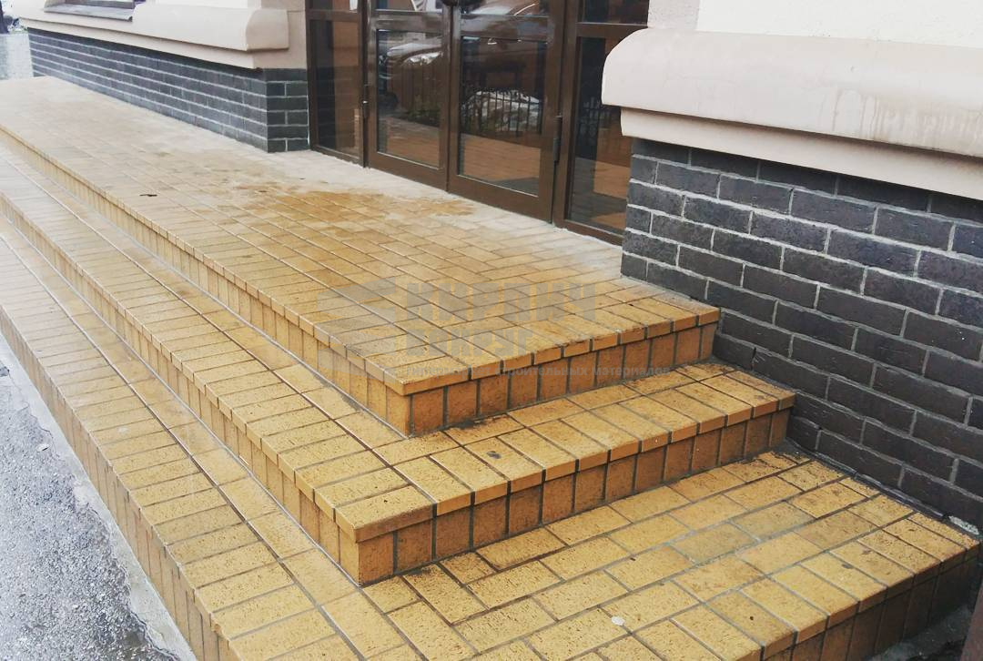 Вечное крыльцо от feldhausklinker . Клинкерная брусчатка и клинкерная плитка "под кирпич" на цоколе. Цена такого решения приятно шокирует заказчиков;)